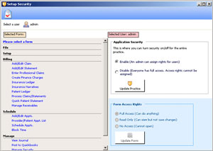 To ensure the security and privacy of your patient and practice data, MedOffice medical billing software gives you full control over the level of access each user is authorized to have. You can limit each of your staff's ability to see screens or change data on a person-by-person basis.