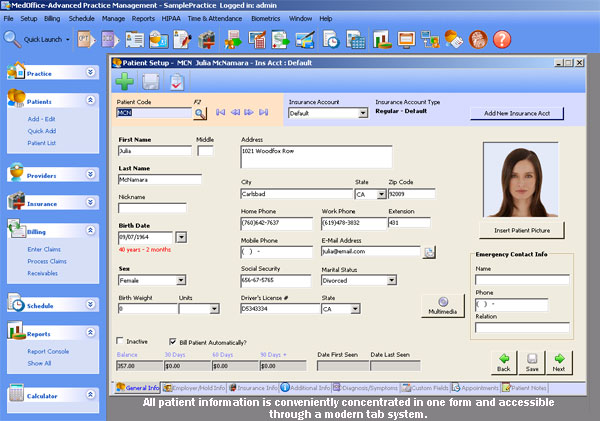one-click access to key information. Users can immediately access insurance files, medical codes,
